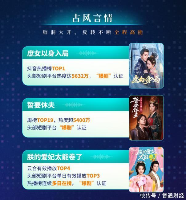 由于阅文头部网文公司出身,擅长内容,做短剧有天然优势。故此,自入局以来,阅文接接连推出多款爆款短剧作品,以精品化特质闻名。