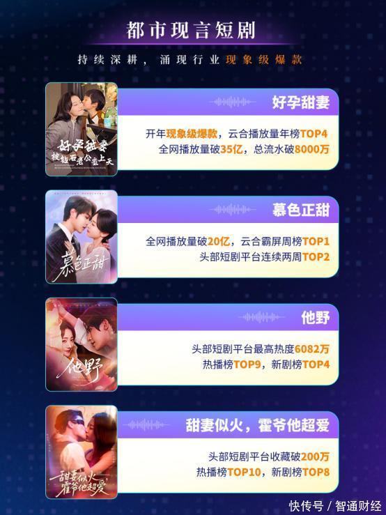 例如2024年,阅文集团推出的精品短剧《万道龙皇》72小时内流水超千万,女频赛道的精品短剧《叮!我的首富老公已上线》48小时内流水突破1200万。再到2025年,阅文又推出开年现象级爆款《好孕甜妻》《他野》《甜妻似火,霍爷他超爱》《庶女以身入局》《离家后我带着女儿涅槃重生》等多元化多题材爆款作品。